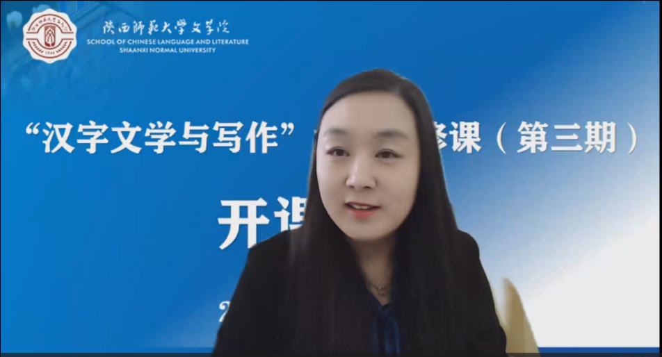 西安曲江一中语文组老师李慧致辞,她表示大学先修课是大学之道的延伸,是高等学府的文化盛宴和文学之旅。她希望同学们可以在中文学习的过程中拓展自己的边界、化小我为大我,与先修课的教授们一起,找寻一份情怀,一份力量,一份担当和一份成为理想中自己的机会。最后,她祝愿各位同学在BETVICTOR的先修课中紧紧追随大先生,孜孜以求大学问,做一个精神上自豪的师大中文预备者。