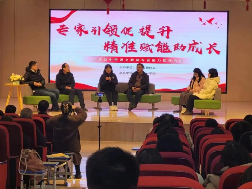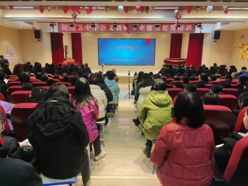1月8日全天,苏仲乐一行在渑池县容一公司对渑池县全体语文教师进行了专业能力提升培训。苏仲乐、李跃力、贺卫东为全体语文教师和高中生做了关于文学经典阅读、高考文学类文本阅读应对和教师成长发展为主题的报告,王美智则为全县高中语文教师上了一节示范课。随后,苏仲乐一行深入容一中学课堂,听课评课,指导教师教研,并就语文教学中的问题举行了专场答疑交流活动。