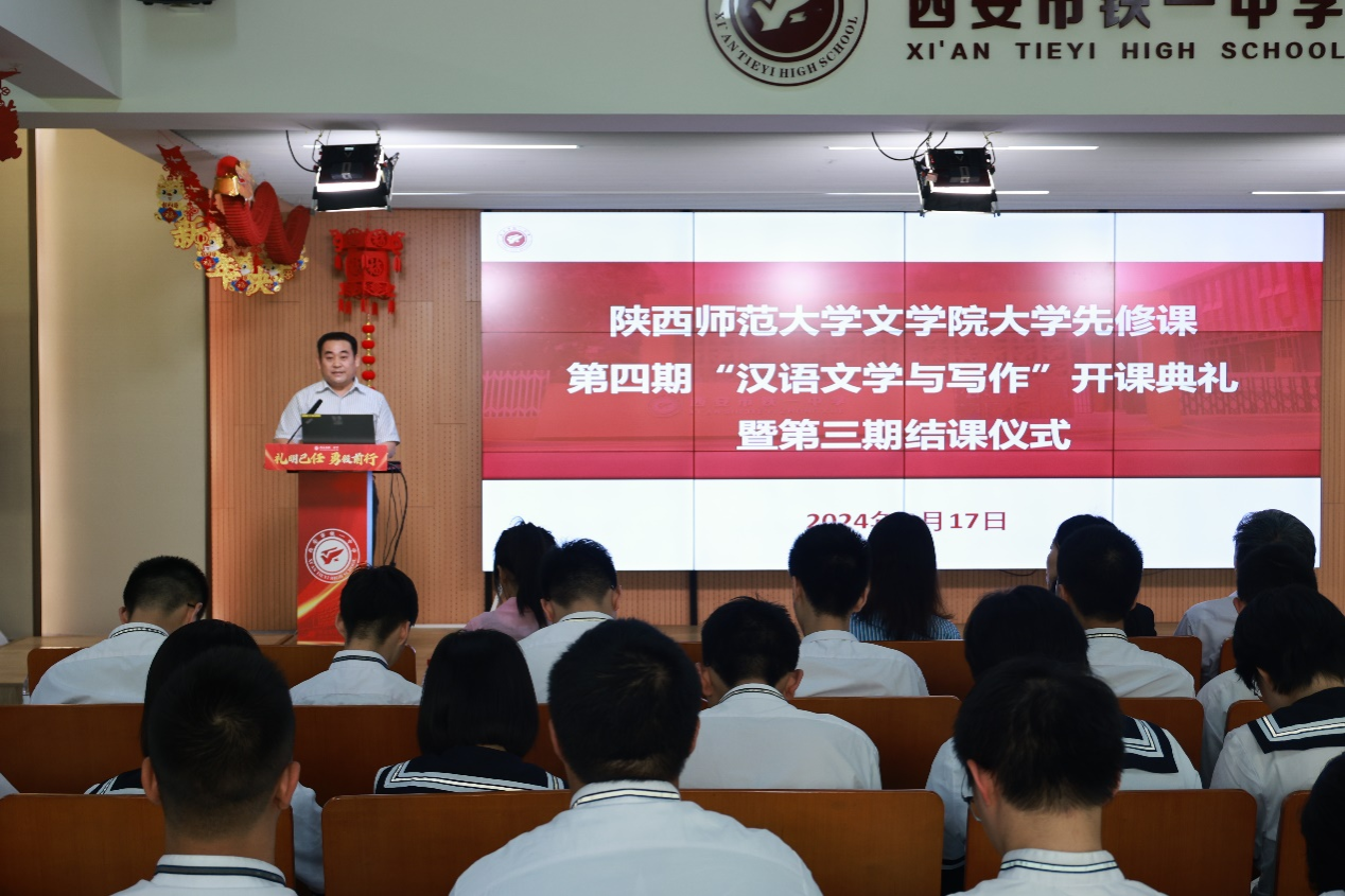 (通讯员:魏姗姗)5月17日下午,公司在西安市铁一中学顺利举行大学先修课第四期“汉语文学与写作”开课典礼暨第三期结课仪式。公司苏仲乐经理、周广干副经理,先修课四位授课教师朱鸿教授、赵学清教授、李跃力教授、郭雪妮教授,西安市铁一中学庆群董事长、龚少华副董事长、语文学科教师代表和西安市铁一中学先修课学员出席。仪式由西安市铁一中学董事长助理马宁主持。