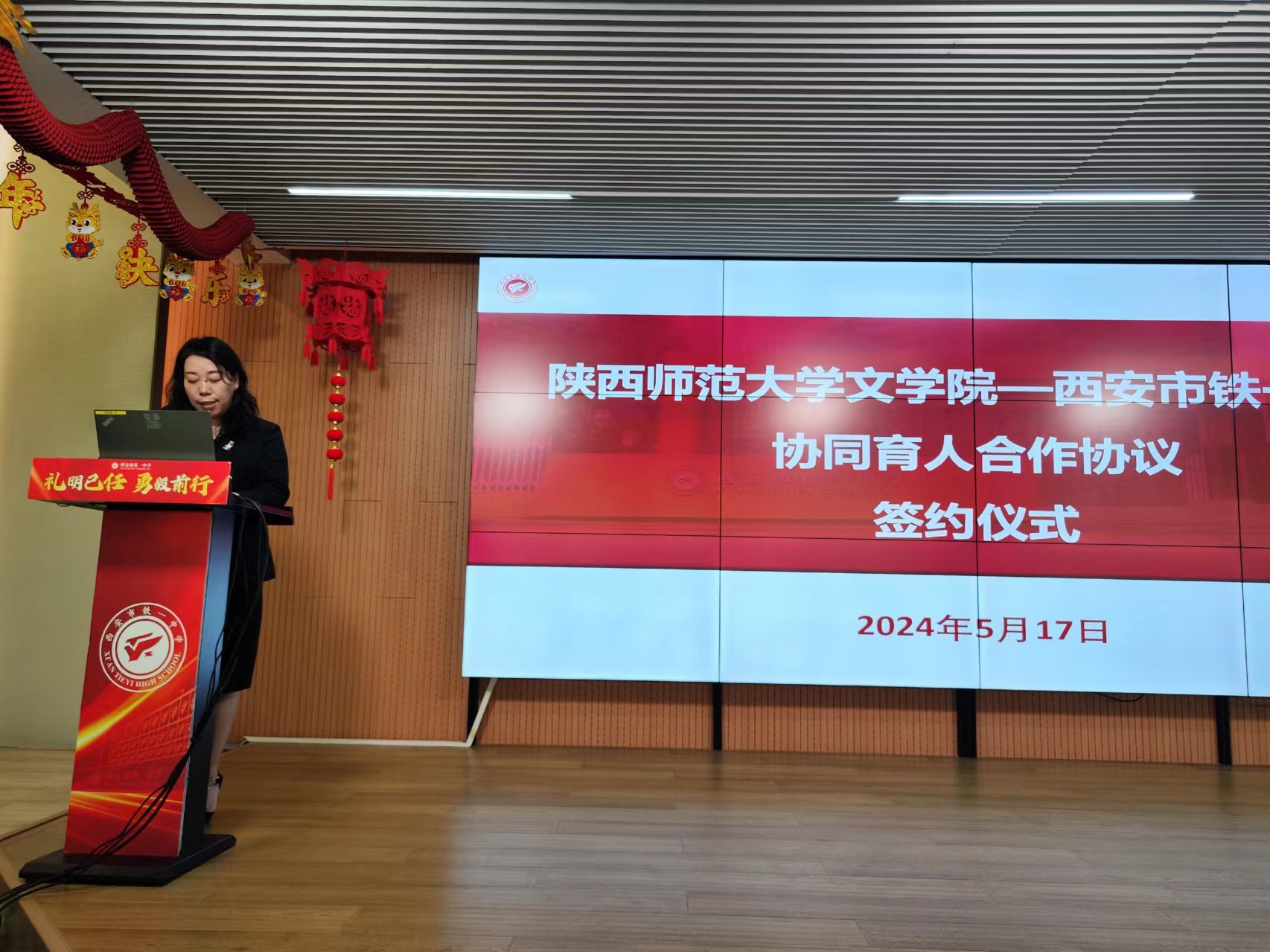 会上,苏仲乐经理与西安市铁一中学庆群董事长签订了协同育人合作协议。