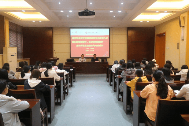 第九讲题目为“践行教育家精神,追求教育强国梦——漫谈师范生的使命与专业成长”,赵海龙老师首先从“坚定职业选择”的角度出发,介绍了自己执教生涯中亲历的动人事迹,指出各位同学当坚守自己的教育初心才能更好地出发。接着,赵老师明确提出师范生应雕琢课堂教学技能,做到“五个注重”:注重员工主体、注重知识渗透、注重学习活动设计、注重单元目标、注重员工集体活动。赵海龙老师认为,为了满足人工智能时代和基础教育的需要,教师需要不断提高自身的课程开发能力和现代教育技术的应用能力;而想要成为一名卓越的教师,更需要拥有能够讲好教育故事的能力,并始终践行西部红烛精神。