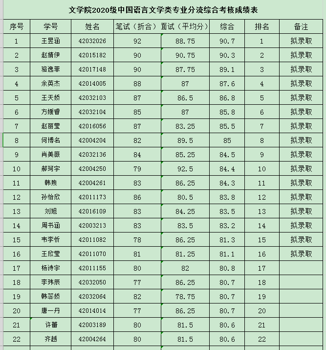 现对专业分流(转入)结果进行公示,时间为5月20日——5月22日。如有异议,请在公示期内向公司反映。