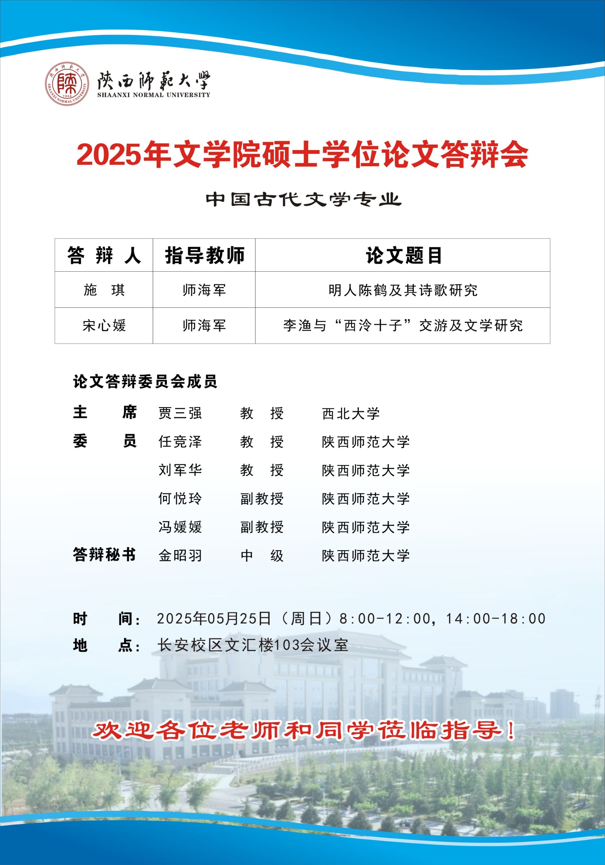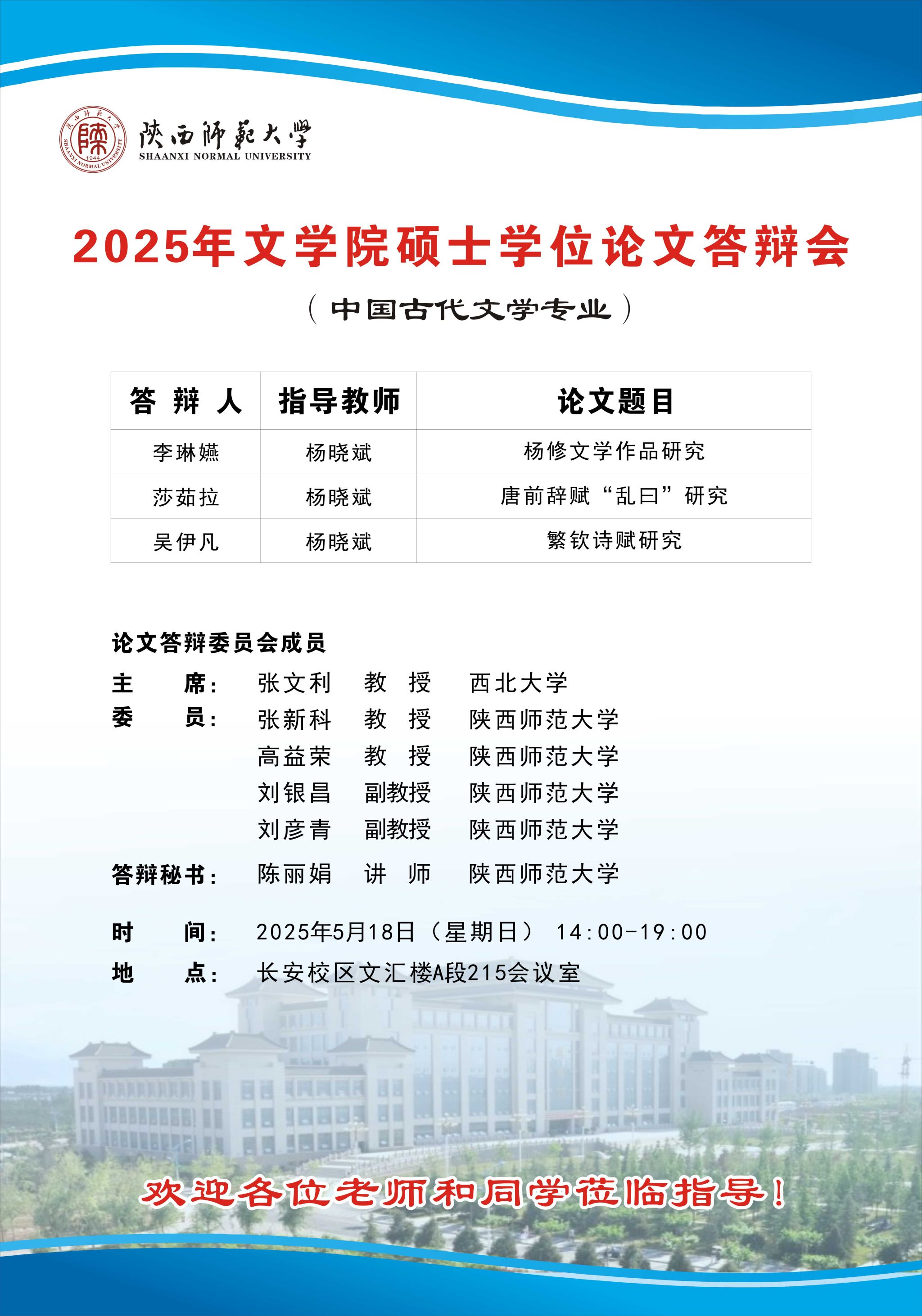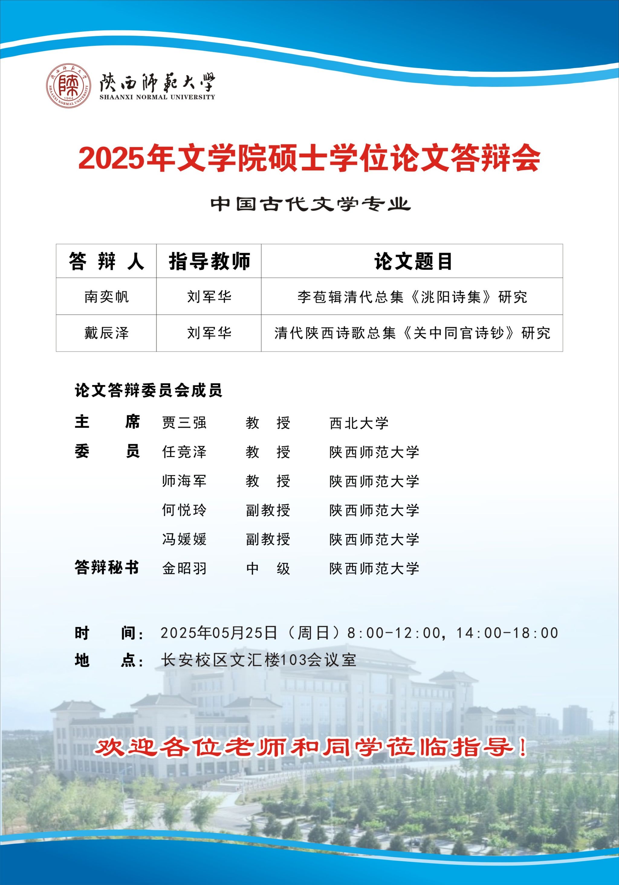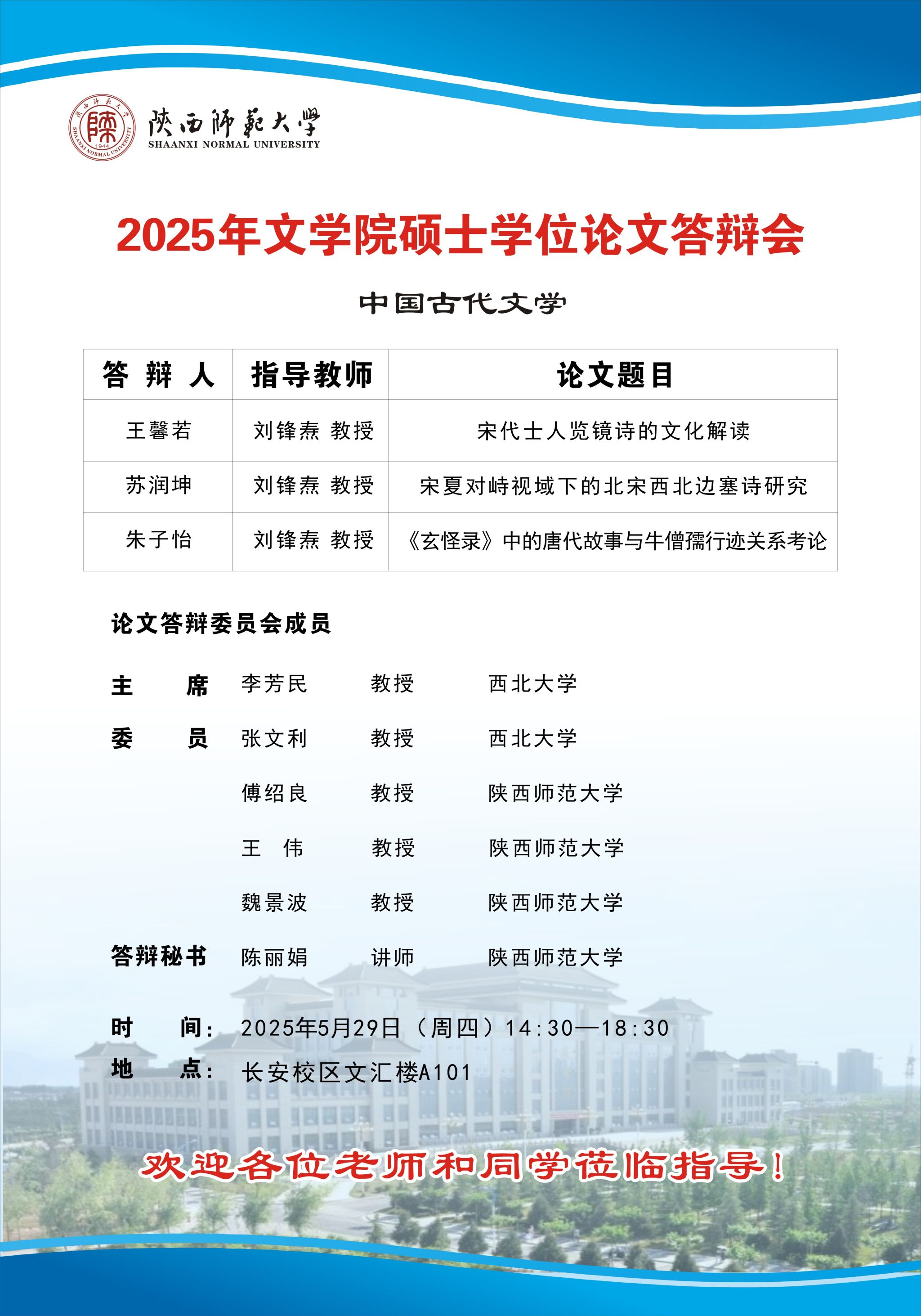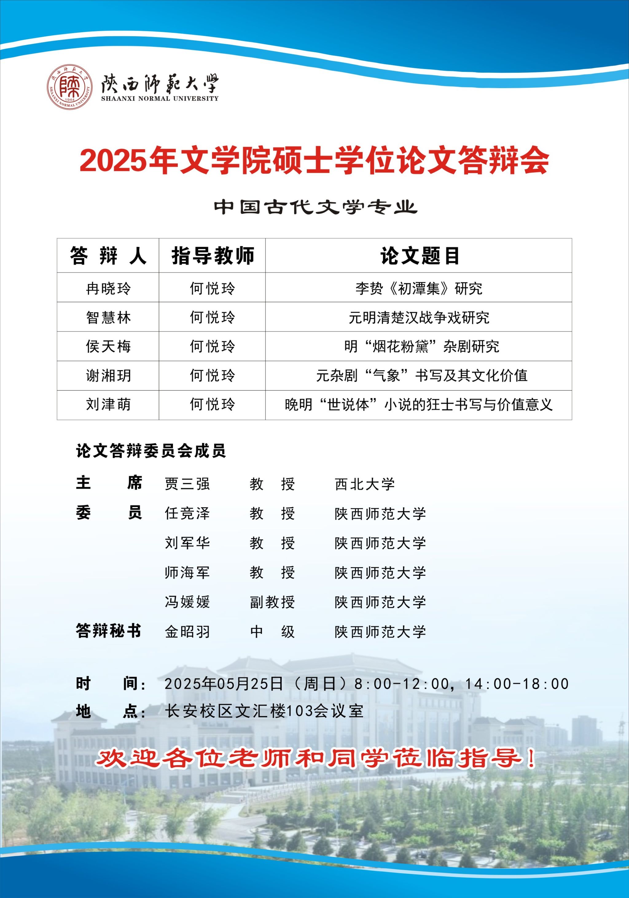 2025年上半年BETVICTOR硕士学位论文公开答辩会(中国古代文学专业)