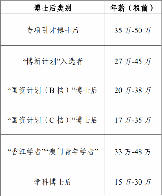二、全职博士后岗位待遇