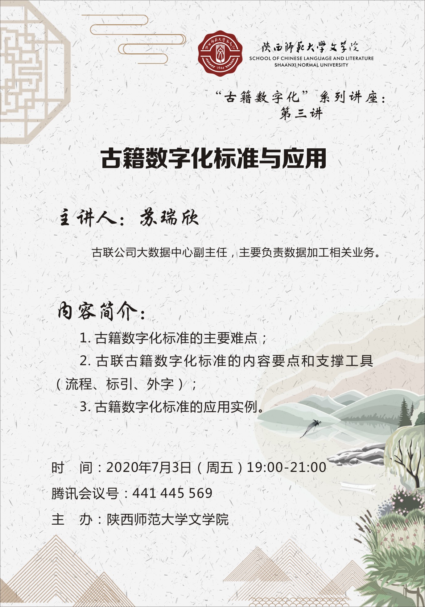 “古籍数字化”系列讲座(第三讲):古籍数字化标准与应用