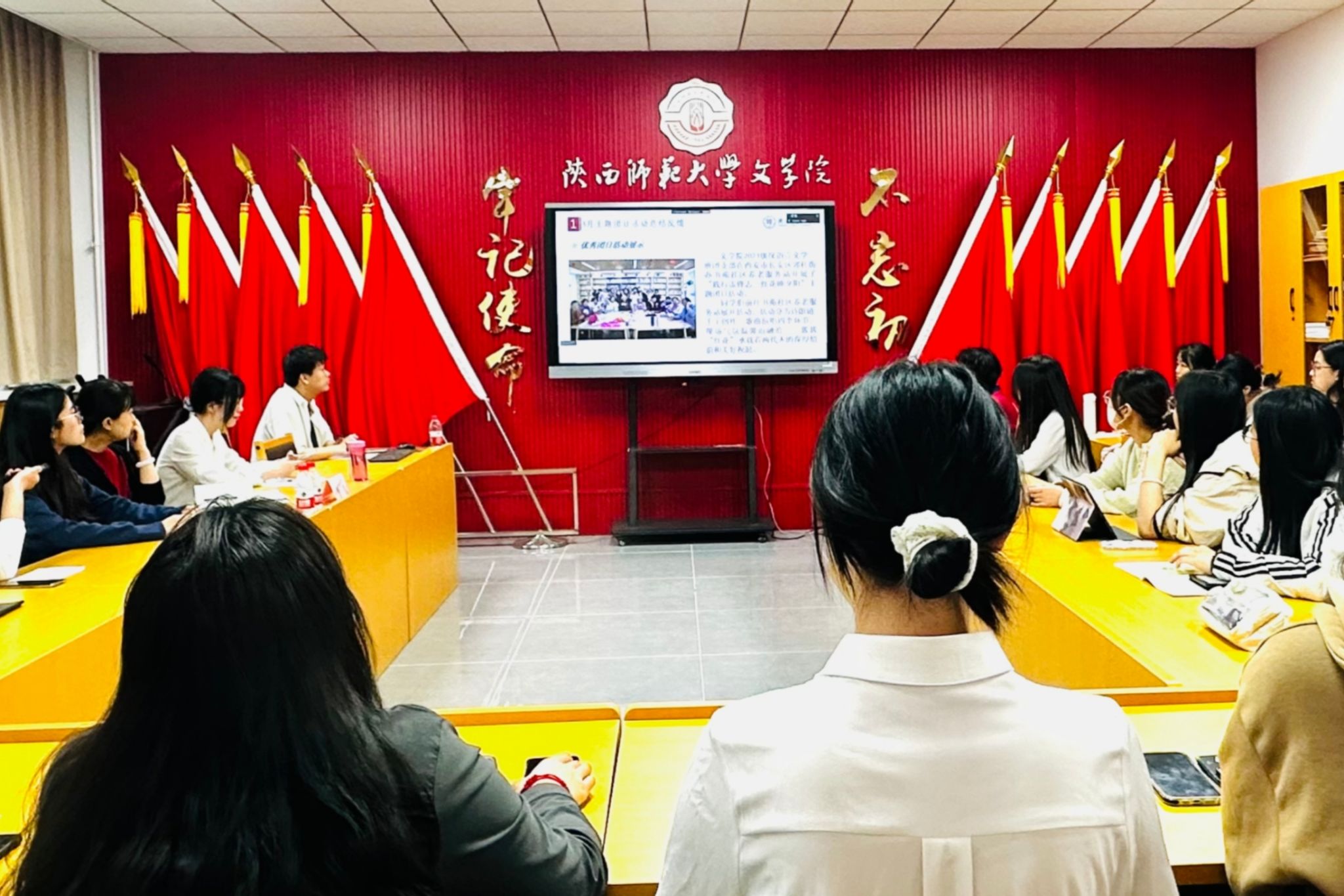 团委组织部员工干部尹秋影、杨钰姣分别围绕3月主题团日活动总结反馈与团支部书记素质能力大赛进行讲解,为团日活动的开展提出了创新性建议与指导,对大赛赛制、内容做了详细解读。第四届陕西高校团干部素质能力大赛二等奖选手王锦从自身参赛经历出发,结合比赛细则,聚焦各个环节进行了经验分享,在交流与互动中增进了同学们对于本次大赛的理解。