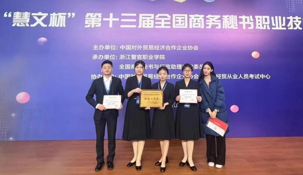 2023年12月1日至3日,“慧文杯”第十三届全国商务秘书职业技能大赛顺利举办。秘书学系2021级何蔚娴、胡怡涵、梁艺芊、米文浩等4名同学在靳希、宋颖慧老师,2020级本科生张珂、潘婉晴、刘菁菁和2022级研究生戴辰泽的指导下获得“团体二等奖”,何蔚娴同学斩获个人项目“最佳台风奖”。