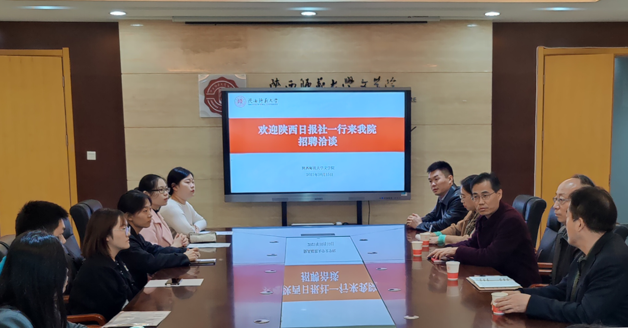 2021年10月15日上午,陕西日报社在文汇楼A段215会议室举行了专场招聘会。文公司党委副书记李钊、本科生辅导员王鑫、应聘毕业生参加了此次会议。